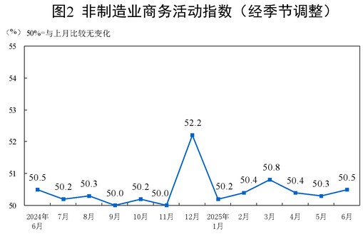 业务活动预期指数为55.7%,比上月下降0.5个百分点,仍位于较高景气区间,表明多数非制造业企业对市场发展保持乐观。分行业看,建筑业业务活动预期指数为52.4%,比上月上升0.7个百分点;服务业业务活动预期指数为56.3%,比上月下降0.7个百分点。