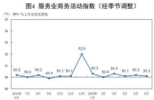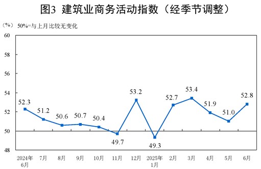 分行业看,建筑业商务活动指数为49.3%,比上月上升0.2个百分点;服务业商务活动指数为50.1%,比上月下降0.4个百分点。从服务业行业看,邮政、电信广播电视及卫星传输服务、货币金融服务等行业商务活动指数均位于60.0%以上高位景气区间;餐饮、房地产、文化体育娱乐等行业商务活动指数均低于临界点。