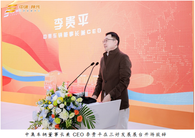 中集车辆董事长兼CEO李贵平在开场致辞时表示,“两年前,我和袁宏明董事长在这里为‘中集•陕汽’的‘三好发展’展台揭幕,向全行业宣告中集车辆和陕汽重卡将以充分协同的姿态,发扬互联∙互补的精神,让两个完全没有股权关联的企业,为深受‘内卷’之苦的主机产业和专用车产业探索一条实现高质量发展的可行之路。”