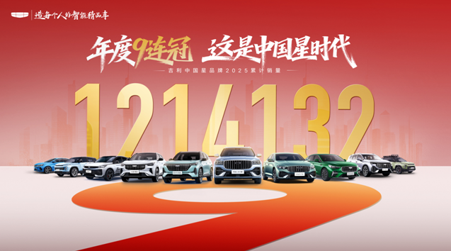 2025年,吉利汽车以超3,024,567辆的年度总销量、39%的同比增幅圆满收官,超额完成年中上调后的300万辆年度销量目标。其中,由星瑞、星越L、博越、帝豪、缤越系列等明星车型组成的吉利中国星矩阵,全年累计销量达1,214,132辆,不仅再次完成逆势增长,更连续9年蝉联中国品牌燃油乘用车销量冠军,为中国品牌燃油车发展树立全新里程碑。在新能源加速渗透的市场环境下,吉利中国星以全矩阵爆款实力筑牢燃油车“基本盘”,成为无可争议的行业标杆,引领燃油市场的价值跃迁。
