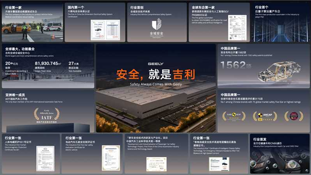 “安全是吉利造车的第一优先级”,这一核心理念贯穿吉利近三十年造车历程,更成为吉利中国星产品研发的”第一性原理“。为筑牢安全防线,吉利持续加大安全领域研发投入,近11年在研发投入上超2500亿,安全专利数1562件位,行业领先。2025年,吉利全球全域安全中心正式发布,获得吉尼斯认证的五大世界纪录,以更多测试项、更全测试能力、更好测试设备、更广测试维度打造全球最领先的综合型安全试验室。同步发布“全域安全2.0”技术体系,以更全面的安全维度、更严苛的验证标准,为吉利中国星的安全研发与生产提供全流程支撑。依托吉利集团的全域安全体系赋能,吉利中国星从研发之初就以“同级安全标杆”为目标,每一款车型都具备超越同级的安全防护能力。