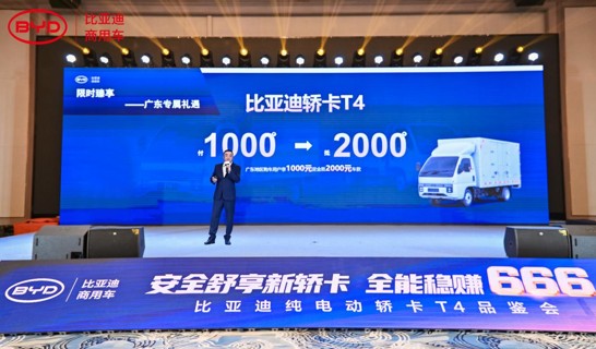 1月27日,“安全舒享新轿卡,全能稳赚666——比亚迪纯电动轿卡T4品鉴会”在广州顺利举办。活动精准对接本地市场需求,为广东推进“双碳”目标、深化城配电动化转型添砖加瓦。