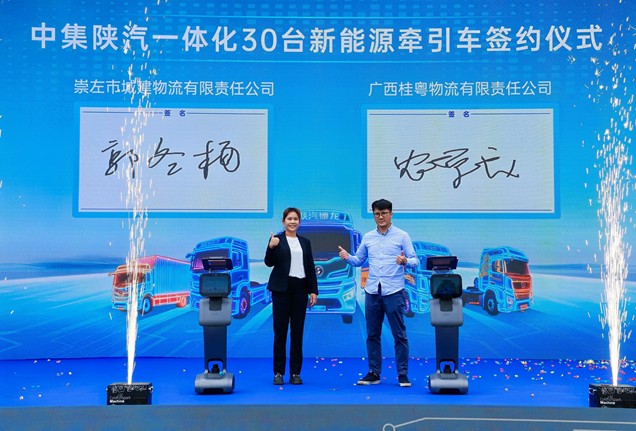活动现场,崇左交投、广西桂粤物流双方签订中集•陕汽一体化30台新能源牵引车订单;陕重汽、广西集鸿天成、崇左城建物流三方共同完成中集•陕汽20台新能源粉罐车车辆交付仪式。这些新能源产品将成为崇左构建绿色物流体系、高质量发展区域经济的硬核支撑。