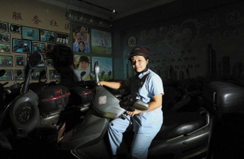 摩托车是李玉兰护士和她同事走街串巷的必要工具,他们将自己的摩托车贴上医院的标识,统一成为社区医疗服务专车。李玉兰说,每天都要骑着摩托车去服务7到10个家庭,给不方便走动的人们提供伤口处理、换药、打针等上门医疗服务。