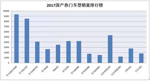 出口方面,2017年国内摩托车企业合计出口两轮摩托车714万辆,同比增长6%。减去出口数后,国内市场两轮摩托车销量仅为794万辆,同比2016年的808万辆,微下滑约1.7%。