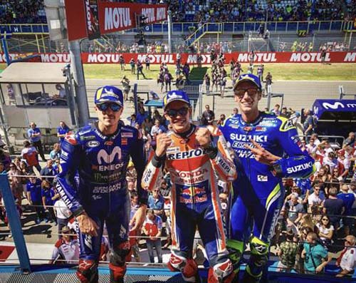 排位赛战况也相当刺激,当进行到最后一圈时Iannone与Lorenzo都还暂居第1、2位,但包含Marquez、Rossi、Vinales、Zarco等车手在最后一刻都跑出更快的圈速,一口气将Iannone与Lorenzo往后挤落到第9、10位,且从取得杆位的Marquez到第11位起跑的Petrucci等各车手间的秒差仅0.501秒,让正赛还没开始就令车迷们兴奋不已,也因此荷兰站的起跑排位分别为:头排起跑的是Marquez、Crutchlow以及Rossi,Dovizioso则在第2排排头、Vinales在第6位,气势正旺的Lorenzo则要从第10位开始追赶。