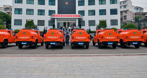 沅陵县是山区大县,也是湖南省重点林区县,森林资源十分丰富,地域广阔,所辖23个乡镇,森林防火和农村消防工作任务十分艰巨。为加大消防工作的宣传力度,全面提升全县火灾综合防控能力,确保全县森林资源和广大群众生命财产安全,日前,县政府筹资160万元购置了10辆小型消防车,用于森林防火和农村消防。