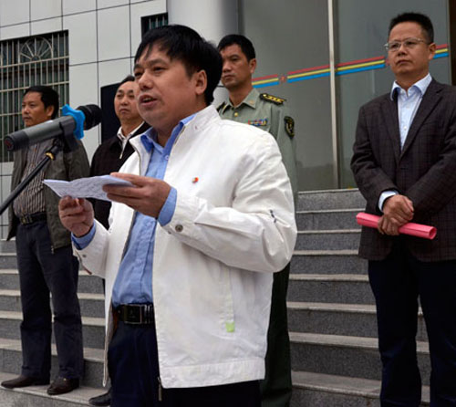 县委副书记、代县长龚琪,市森林公安局副局长陈万年,县武装部部长覃祖福,副县长、县公安局局长谢久文,县政法委副书记敬泽平,县公安消防大队大队长刘彦等出席发放仪式。县委常委、副县长李峰主持仪式。
