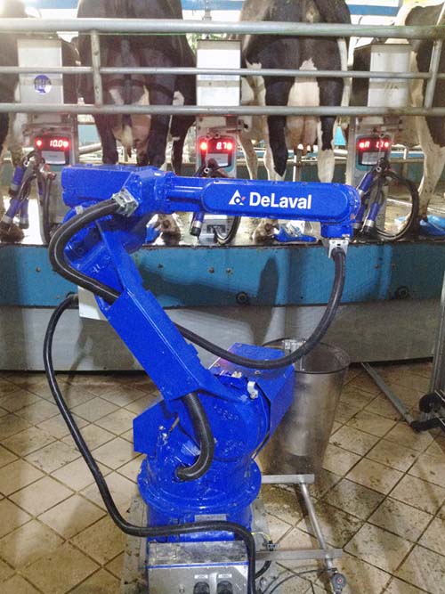 近日,首台利拉伐药浴机器人TSR落户石家庄君乐宝优致牧场并正式投运,这也是中国投入商用的第一台药浴机器人。药浴机器人的投运填补了国内奶牛场自动化应用的空白,提升了传统转台挤奶机的自动化程度。目前,全球共有41台药浴机器人TSR投运,其中美国是药浴机器人TSR普及率最高的国家,其大型转台牧场多采用前后药浴机器人配置。