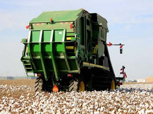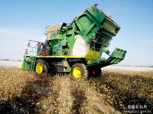 9月28日,记者在2016年我县棉花供给侧结构性改革第六代采棉机开采现场会上见到了示范作业的第六代迪尔CP690采棉机,据农科金岳农机农民专业合作社联合社理事长韩波介绍,该采棉机配有一台机载的圆形棉花打包机,可以实现田间采棉和机载打包一次性完成,采收的棉花可直接打包送到加工厂,杜绝了人为掺假和“三丝”混入,较好地保护了棉花纤维。